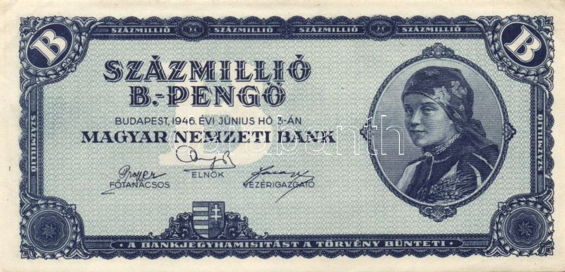 1946. 100.000.000BP (3x) kétféle színváltozat T:I,I-