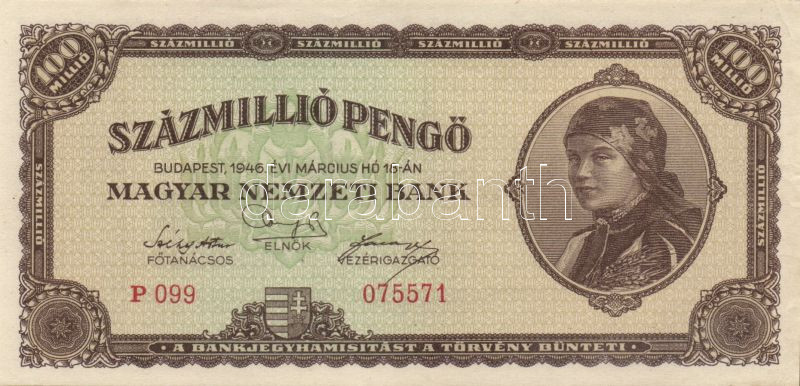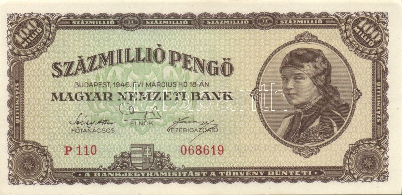1946. 100.000.000P (2x) kétféle színváltozat T:I,I- + 100.000MP + 100.000BP + T:I,I- (foltos)