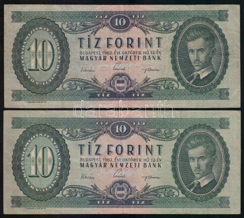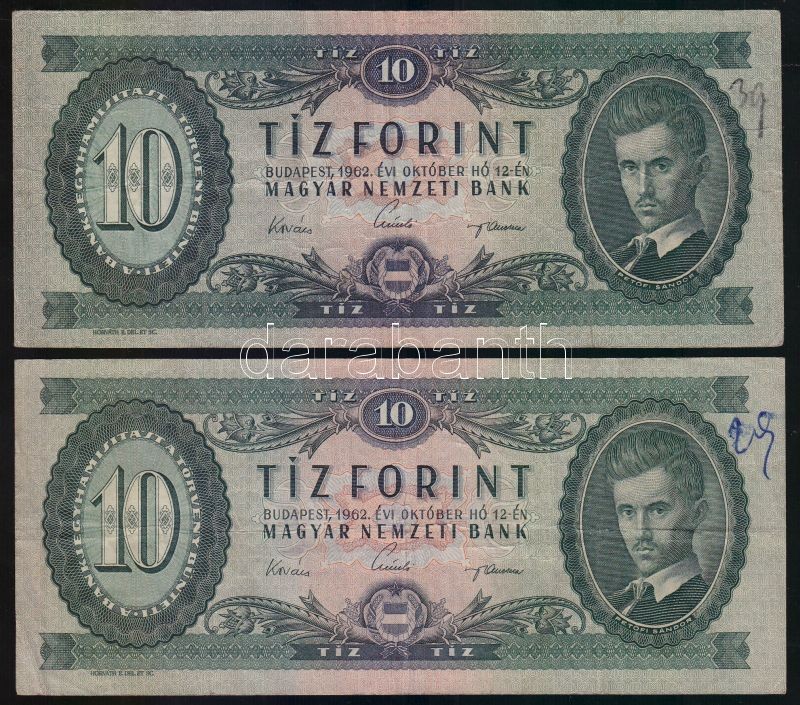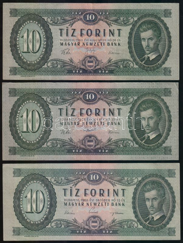 https://www.darabanth.com/en/143-Online-auction/143.0/Numismatics/Hungarian-Banknotes~900101/1957-10Ft-plus-1960-10Ft-plus-1962-10Ft-5x-TII-III~II412285
