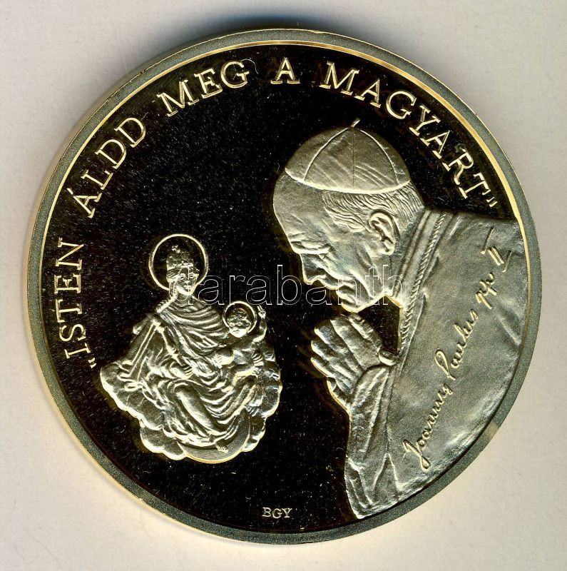 1991. "Napjaink magyar történelme - II. János Pál Pápa látogatása-Pécs" nagyalakú, piefort (vastag), aranyozott emlékérem (d:65mm) T:PP