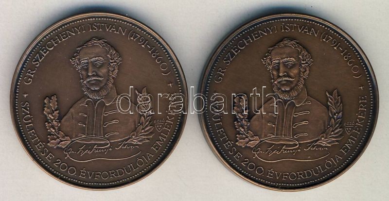 1991. Széchényi születésének 200. évfordulójára kiadott 2db "Lánchíd" + "M.T.A." Br emlékérem szign.:Bozó T:1