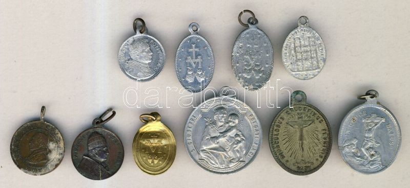 7db vallásos függőmedál + 3db függőmedál: XIII.Leó pápa, X. Piusz pápa, XI. Piusz pápa arcképével T:vegyes