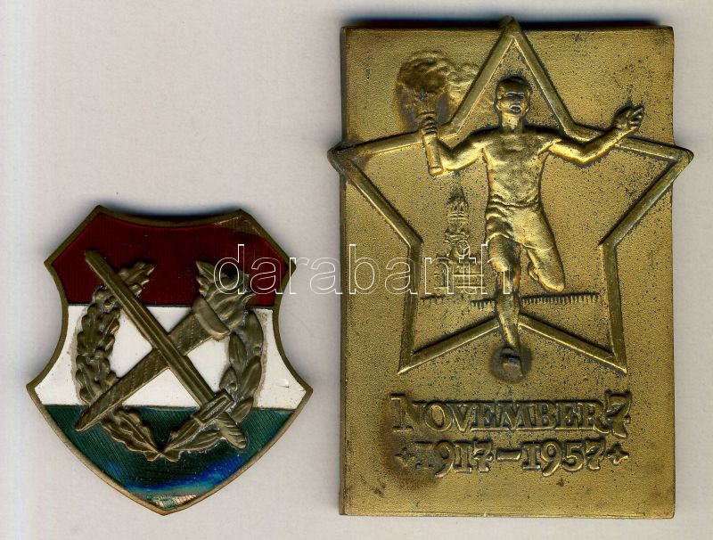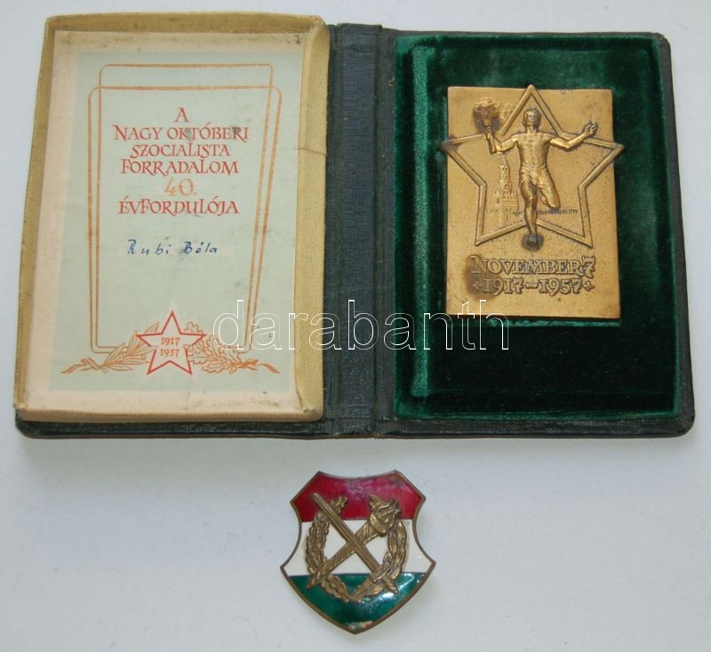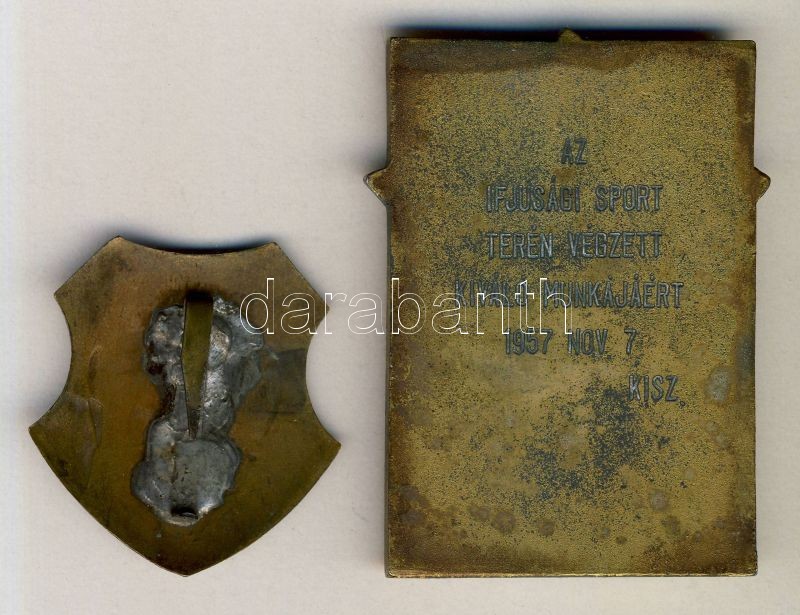 https://www.darabanth.com/en/143-Online-auction/143.0/Numismatics/Military~900109/1957-Kisz-plakett-nevre-szolo-adomanyozoi-tokban-plus-Magyar-Szabadsagharcos-Szovetseg-jelven~II425477