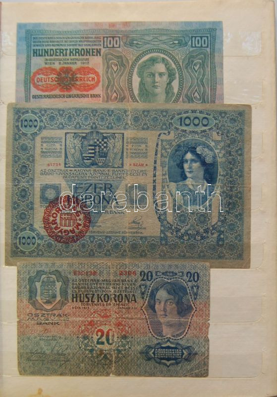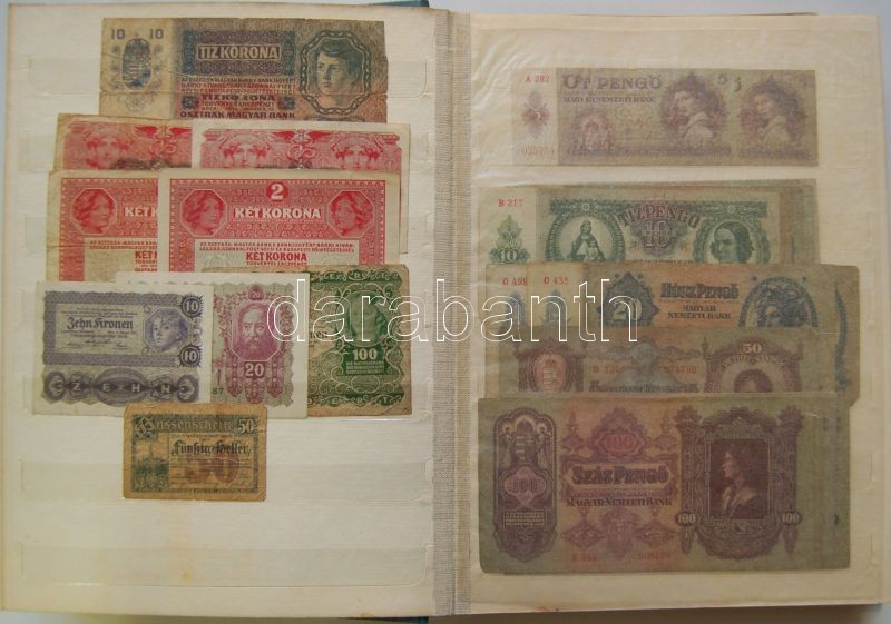 Kis vegyes gyűjtői bankjegy tétel albumba rendezve, 1900-as évek elejé... https://www.darabanth.com/en/143-Online-auction/143.0/Numismatics/Mixed-banknote-and-coin-lots~900110/Kis-vegyes-gyujtoi-bankjegy-tetel-albumba-rendezve-1900-as-evek-elejetol-kozte-1902-1000K-~II423411