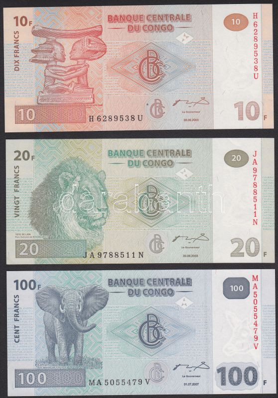 https://www.darabanth.com/en/144-Online-auction/144.0/Numismatics/Foreign-banknotes~1000092/Kongoi-Demokratikus-Koztarsasag-2003-10Fr-plus-20Fr-plus-2007-100Fr-TI~II411669
