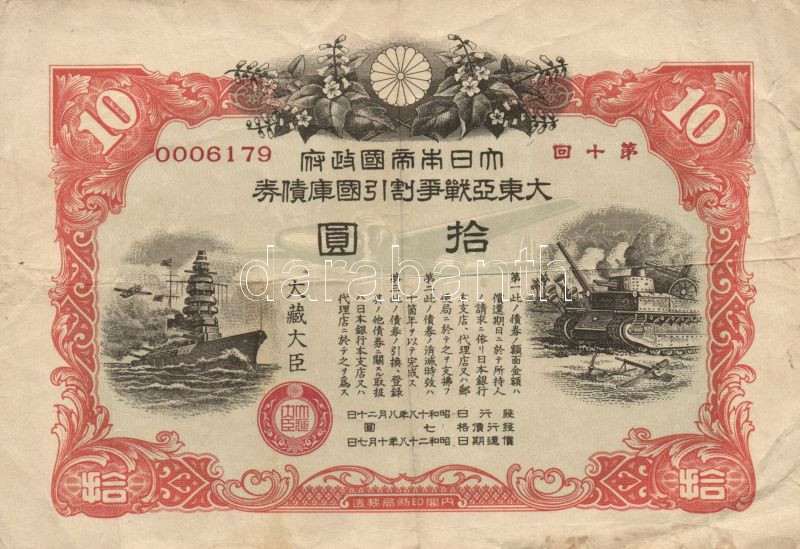 https://www.darabanth.com/en/144-Online-auction/144.0/Numismatics/Hungarian-and-foreign-emergency-notes-and-coins-tokens~1000087/Japan-1942-10Y-Nemzeti-haborus-kotveny-TIII~II428907
