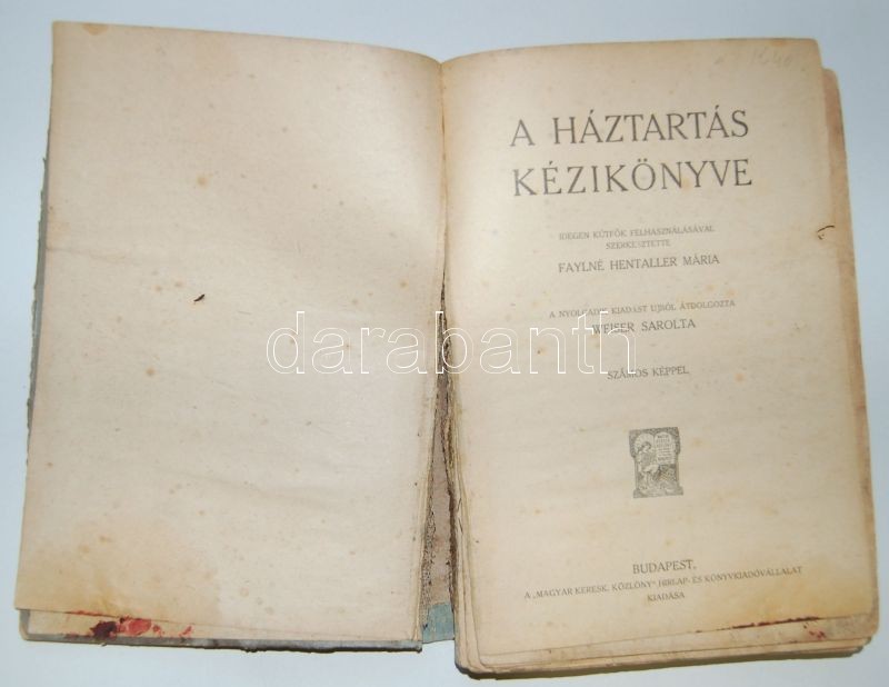 Bp. é.n. Magyar Ker.K... https://www.darabanth.com/en/144-Online-auction/144.0/Other-collectibles/Books-Other-rarities~201/Faylne-Hentaller-Maria-A-haztartas-kezikonyve--Bp-en-Magyar-KerKozlony-Nagyon-gazdag-~II428578