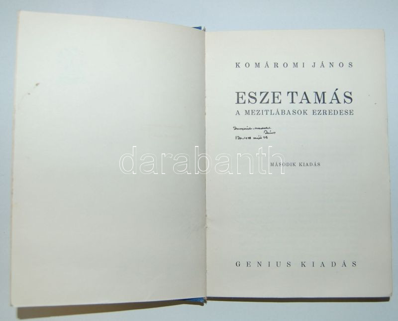 https://www.darabanth.com/en/144-Online-auction/144.0/Other-collectibles/Books-Other-rarities~201/Komaromi-Janos-Esze-Tamas-Bp-Dick-Mano-Dedikalt-elso-kiadas-Aranyozott-sorozati-vaszonkC3~II427284