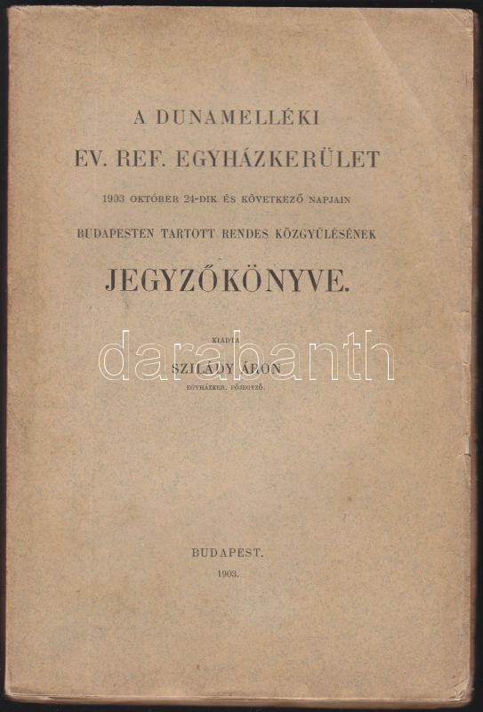 https://www.darabanth.com/en/144-Online-auction/144.0/Other-collectibles/Books-Religion~197/A-Delvideki-ev-ref-egyhazkerulet-kozgyulesenek-jegyzokonyve-Bp-1903-Szilady-Aron-35~II431276