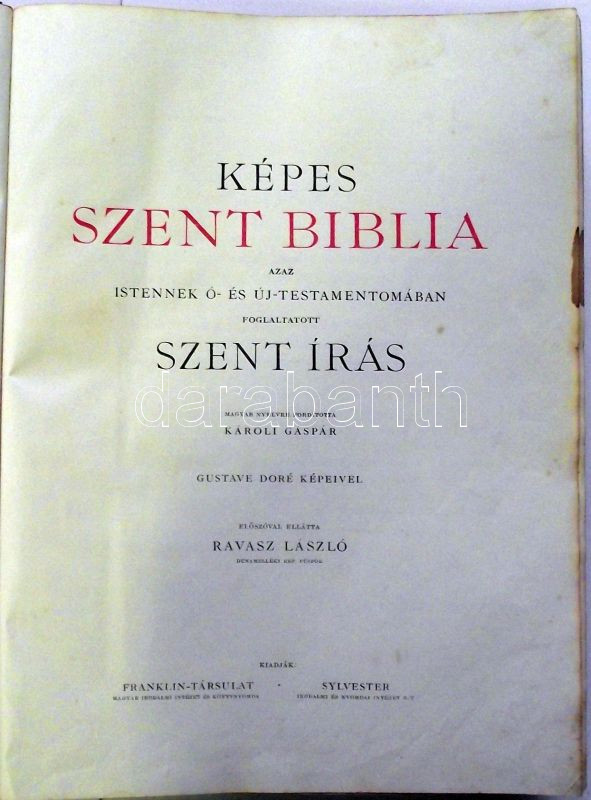 Képes Szent Biblia, az az Istennek Ó- és Új- Testamentomában foglaltat... https://www.darabanth.com/en/144-Online-auction/144.0/Other-collectibles/Books-Religion~197/Kepes-Szent-Biblia-az-az-Istennek-O-es-Uj-Testamentomaban-foglaltatott-Szent-Iras-Fordit~II430474