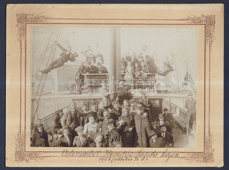 1902 Hegedűs Sándor nevű gőzhajón készült nagyméretű keményhátú fotó 17x22 cm