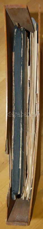 Description: Kaas Rezső zeneszerző kotta-hagyatéka, benne kézzel írott és nyomtatott kotákkal, közte Csárdáskirálynő, Magyar nótakincs, Fekete Péter, és egyéb rövidebb hosszabb darabok.