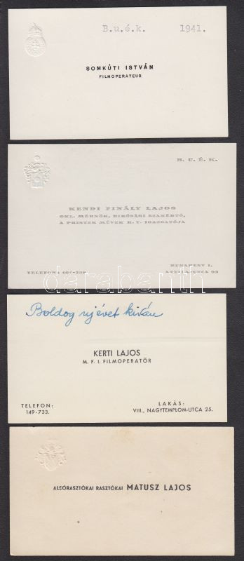 cca 1940 4 db érdekes névjegykártya filmesektől