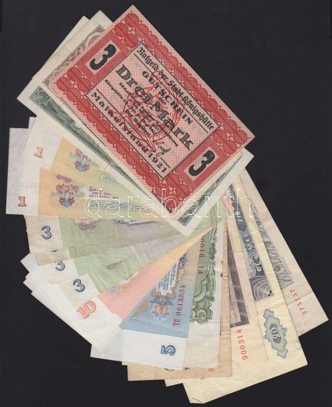 Kis vegyes bankjegy tétel, összesen 20db, orosz, jugoszláv, lengyel, csehszlovák pénzek és egy szükségpénz is köztük T:vegyes