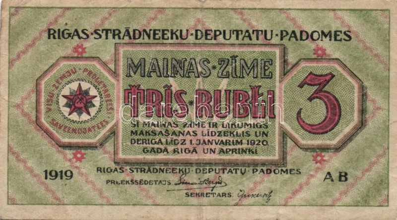 https://www.darabanth.com/en/145-Online-auction/145.0/Numismatics/Foreign-banknotes~500102/LettorszagRiga-szovjet-munkaskuldottek-kiadasa-1919-3R-TIIIapro-lyuk~II434215