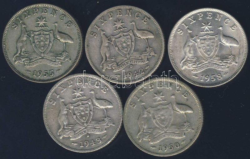 https://www.darabanth.com/en/145-Online-auction/145.0/Numismatics/Foreign-coins~500103/Ausztralia-1942-1958-Sixpence-Ag-5x-klf-evszamokkal-T2-3~II432874
