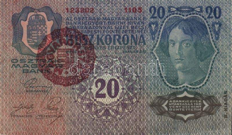 https://www.darabanth.com/en/145-Online-auction/145.0/Numismatics/Hungarian-banknotes~500098/1913-20K-II-Kiadas-piros-Magyarorszag-felulnyomassal-TIIplus~II432743