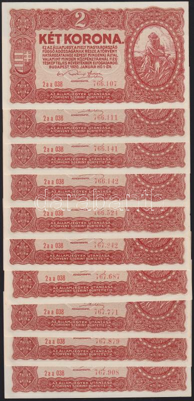 https://www.darabanth.com/en/145-Online-auction/145.0/Numismatics/Hungarian-banknotes~500098/1920-2K-2aa-10x-egymashoz-kozeli-sorszamuak-is-TI-I-foltos~II434424