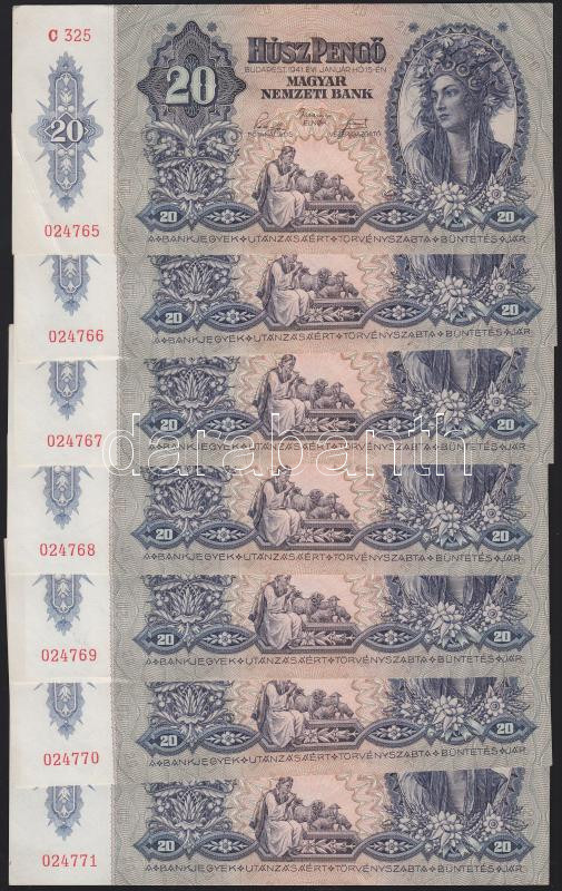 1941. 20P (7x) egymás utáni sorszámmal! T:II+(egyszer hajtott mindegyik)