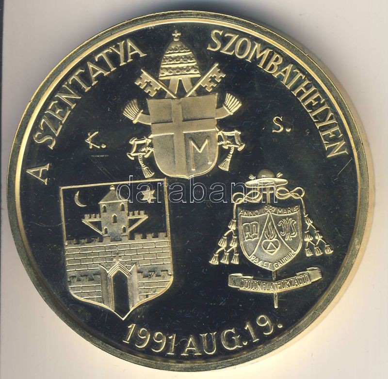 1991. "II.János Pál Szombathelyen" nagyalakú piefort(vastagveret) aran...