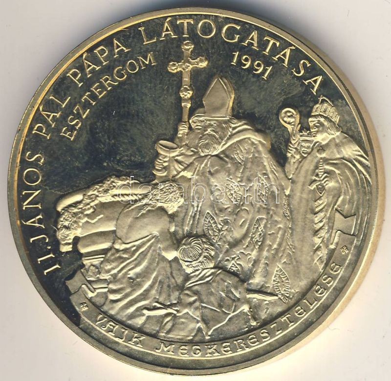 1991. "Napjaink magyar történelme - II. János Pál Pápa látogatása - Esztergom" aranyozott emlékérem T:PP