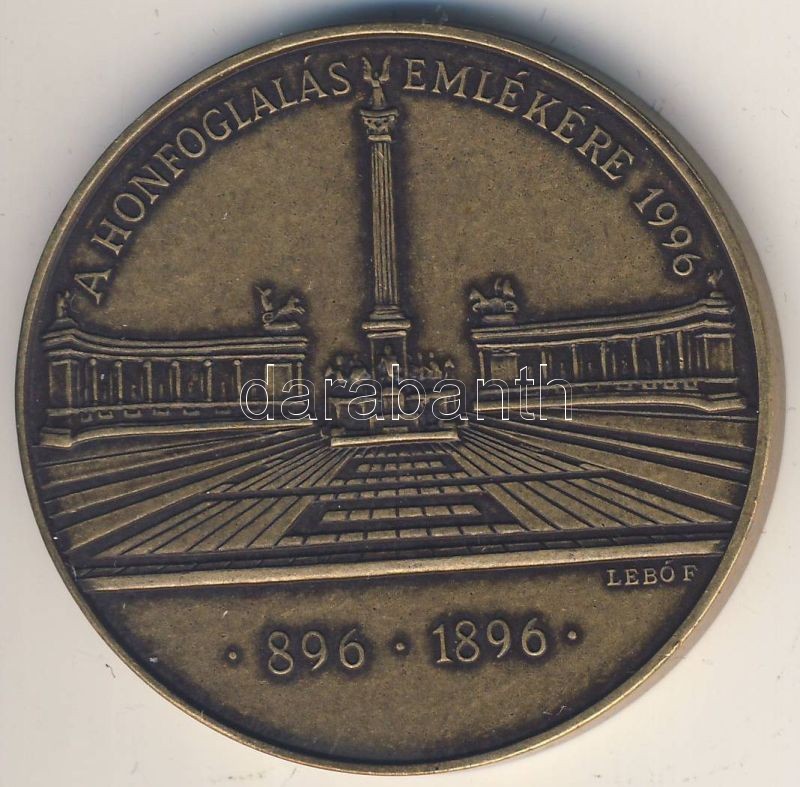 1996. "Árpád Nagyfejedelem / A honfoglalás emlékére" Br emlékplakett. Szign.: Lebó F. T:1