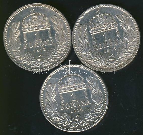 https://www.darabanth.com/en/145-Online-auction/145.0/Numismatics/Hungarian-metal-and-silver-coins~500099/1912-1915-1K-Ag-3x-klf-evszamokkal-T2-3~II431814