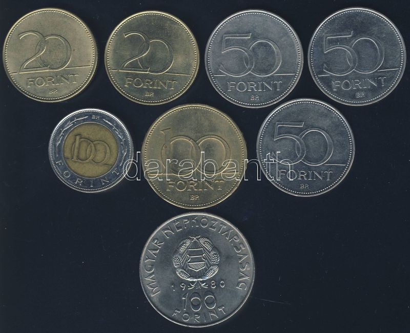 https://www.darabanth.com/en/145-Online-auction/145.0/Numismatics/Hungarian-metal-and-silver-coins~500099/1980-100Ft-plus-1995-2006-20Ft-Deak-2x-plus-50Ft-3x-plus-100Ft-plus-100Ft-Kossuth-T2~II432419