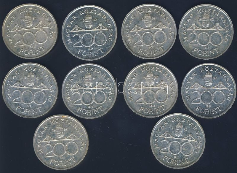 https://www.darabanth.com/en/145-Online-auction/145.0/Numismatics/Hungarian-metal-and-silver-coins~500099/1992-200Ft-Ag-MNB-10x-T1-1-~II434518