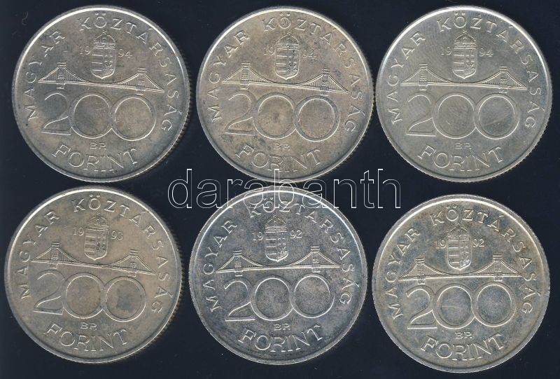 https://www.darabanth.com/en/145-Online-auction/145.0/Numismatics/Hungarian-metal-and-silver-coins~500099/1992-94-200Ft-Ag-MNB-Deak-6x-T1-2-2-2-~II435735