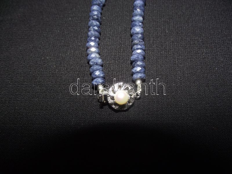 Fazettált 205 karátos zafír nyaklánc tenyészett gyönggyel díszített ez...