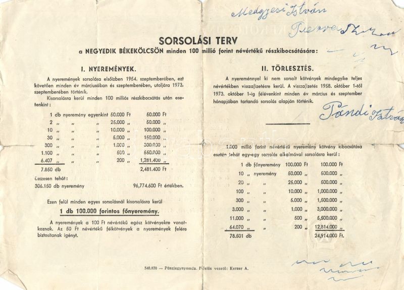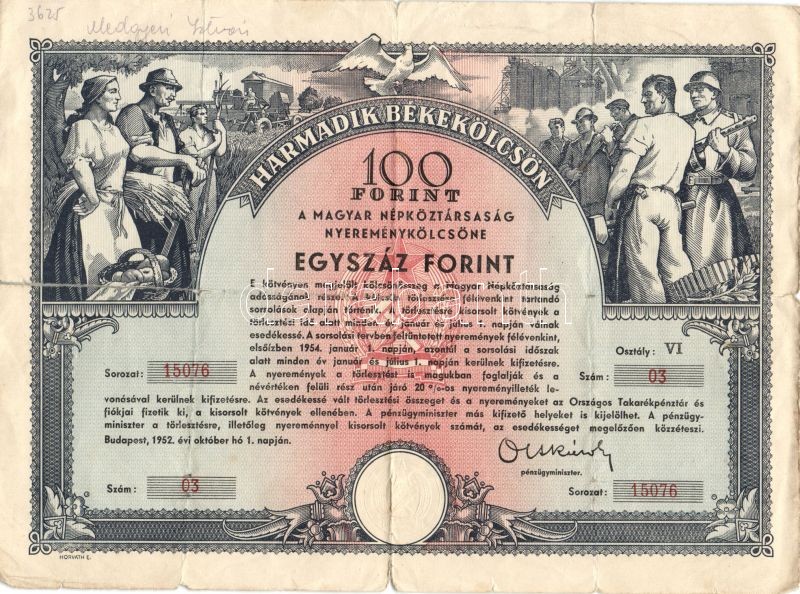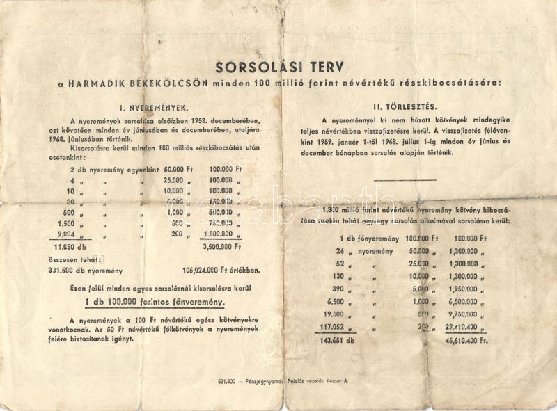 https://www.darabanth.com/en/145-Online-auction/145.0/Numismatics/Shares-Securities-and-Tickets~500095/1952-Harmadik-Bekekolcson-nyeremenykolcsone-100Ft-rol-plus-1953-Negyedik-Bekekolcson-ny~II432708