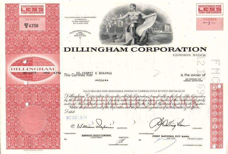 USA / San Francisco 1968. Dillingham Corporation építőipari cég részvénye T:I