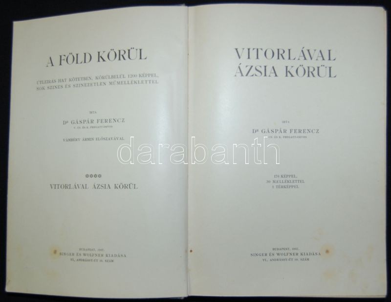 https://www.darabanth.com/en/145-Online-auction/145.0/Other-collectibles/Books-Travelling-cities~213/1907-Dr-Gaspar-Ferencz-Vitorlaval-Azsia-korul-IV-kotet-Singer-es-Wolfner-Kiado-Bp-17~II425001
