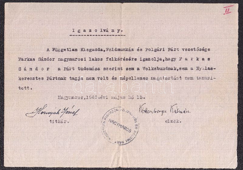 https://www.darabanth.com/en/145-Online-auction/145.0/Other-collectibles/Historical-documents-manuscripts~202/1945-Kittenberger-Kalman-vadasz-es-Afrika-kutato-alairasa-haborus-igazolason-a-Kisgazdap~II433206