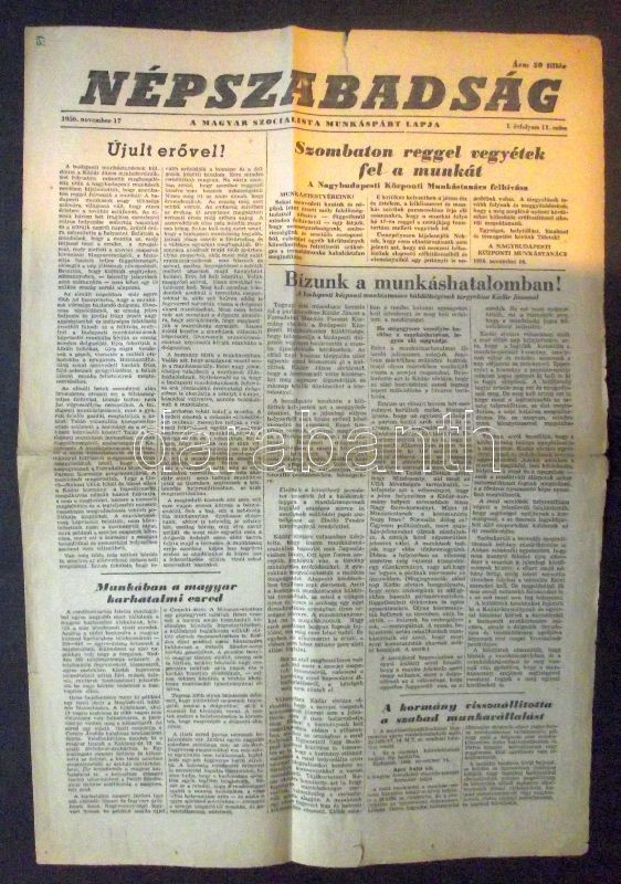 1956 A Népszabadság november 17.-i száma a forradalom híreivel
