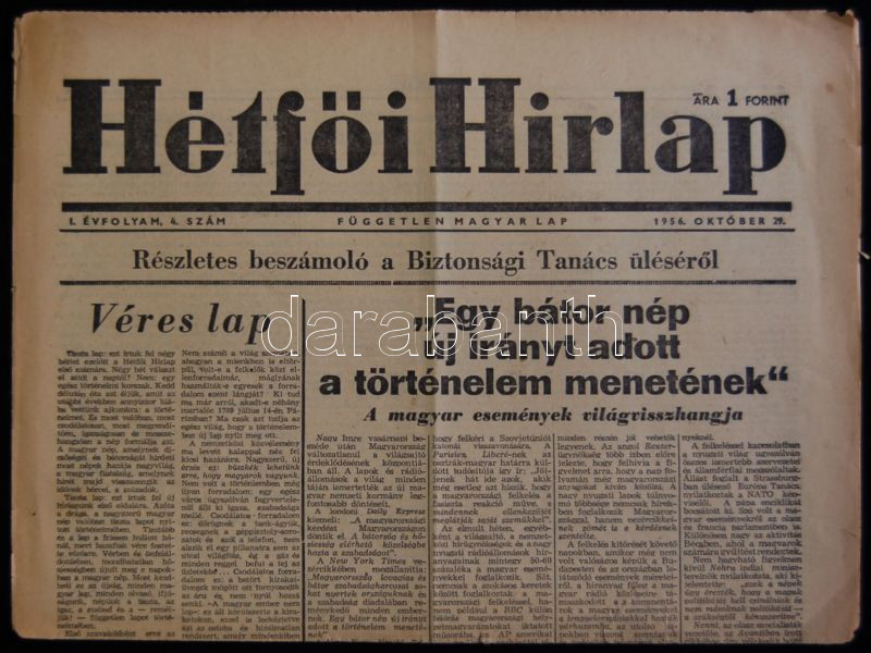 https://www.darabanth.com/en/145-Online-auction/145.0/Other-collectibles/Historical-documents-manuscripts~202/A-Hetfoi-Hirlap-1956-oktober-29-i-szama-a-forradalom-hireivel~II427062