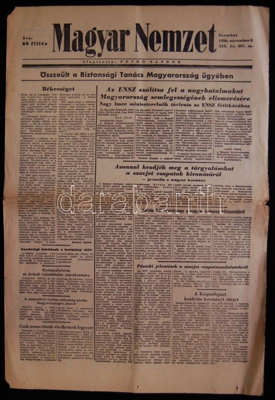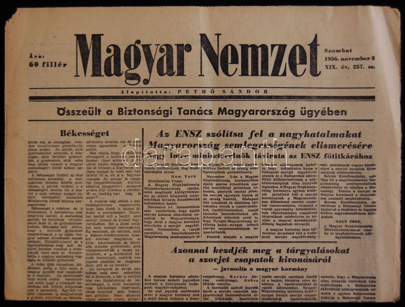 https://www.darabanth.com/en/145-Online-auction/145.0/Other-collectibles/Historical-documents-manuscripts~202/A-Magyar-Nemzet-1956-november-3-i-szama-a-forradalom-hireivel~II427063