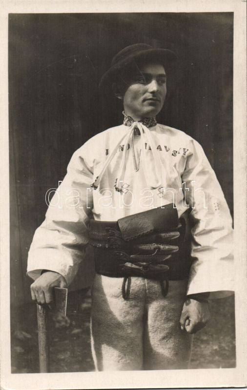 https://www.darabanth.com/en/145-Online-auction/145.0/Postcards/Folklore~500052/Slovakian-folklore-young-farmer-in-Vazsec~II436315