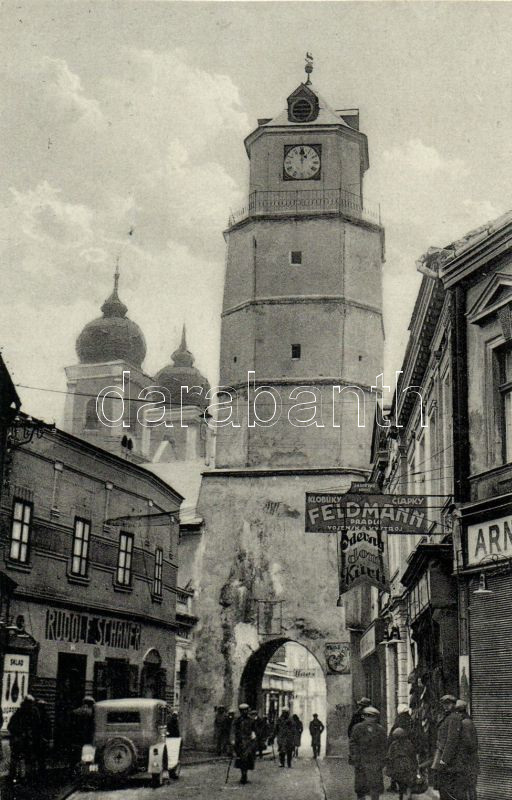 Trencsén tower with the shops of Rudolf Schaner and Feldmann