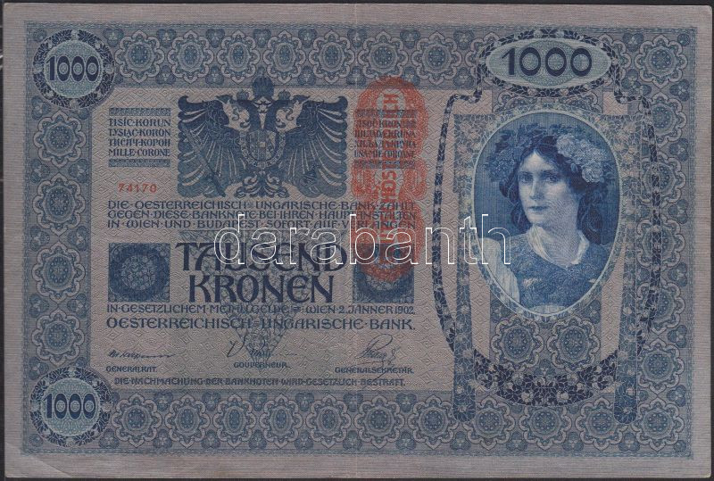 https://www.darabanth.com/en/146-Online-auction/146.0/Numismatics/Hungarian-Banknotes~500107/1902-1000K-fuggoleges-Deutschosterreich-felulnyomassal-TIII~II397054