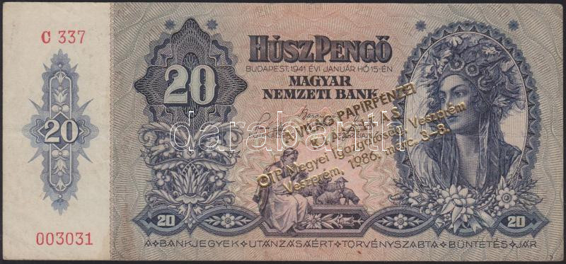 1941. 20P "A Világ Papírpénzei Kiállítás..." felülnyomással T:III