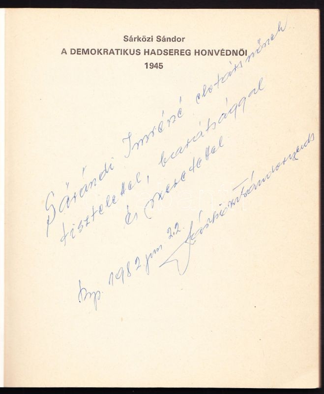 https://www.darabanth.com/en/146-Online-auction/146.0/Other-collectibles/Books-Military~243/Sarkozi-Sandor-A-Demokratikus-hadsereg-honvednoi--Dedikalt-1945-Zrinyi-1982~II438832