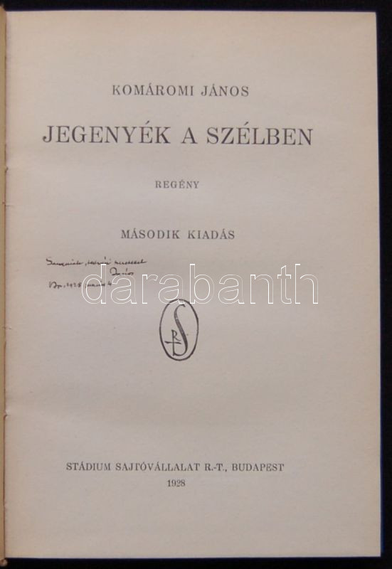 https://www.darabanth.com/en/146-Online-auction/146.0/Other-collectibles/Books-Other-rarities~247/Komaromi-Janos-Jegenyek-a-szelben-Bp-Dick-Mano-Dedikalt-masodik-kiadas-Aranyozott-soroza~II427286