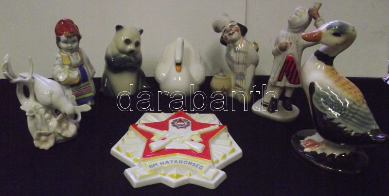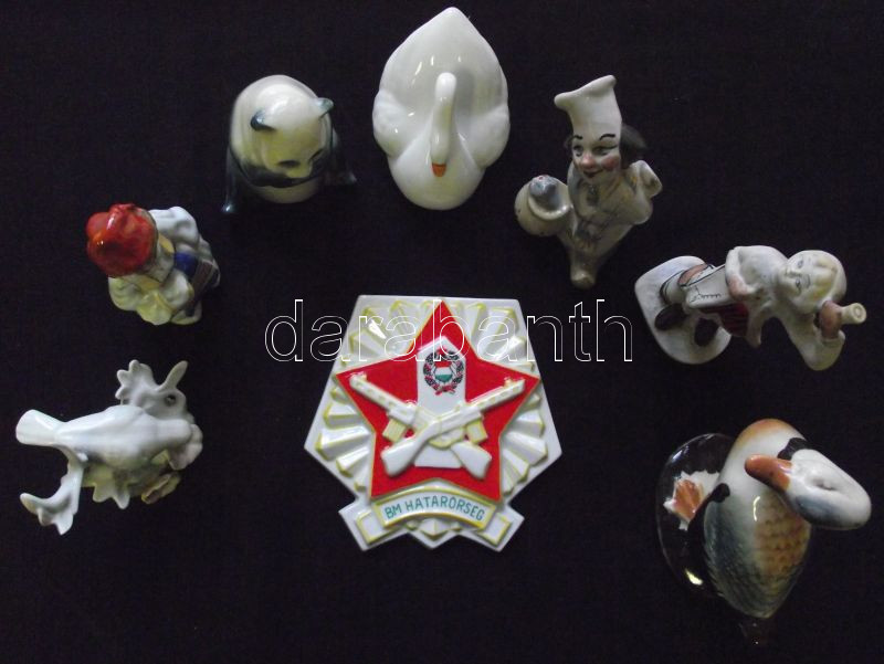 Nagy porcelán tétel: klf állatfigurák, Hollóházi BM Határőrség plakett...