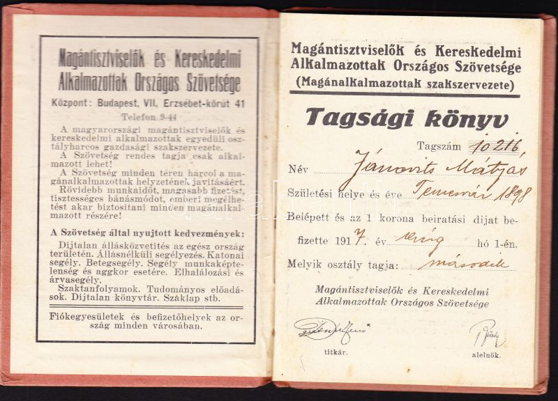 1917 Magántisztviselők és Kereskedelmi Alkalmazottak Országos Szövetsé...