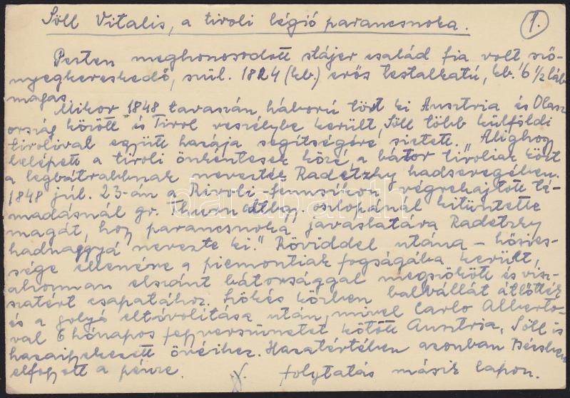 Károly-csapatkereszt viselésére jogosító igazolvány, kitöltetlen-hátulján a tiroli légió parancsnokáról (Vitalis) leírás