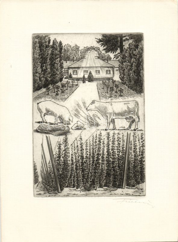 F... jelzéssel: rézkarc-papír 15x22 cm