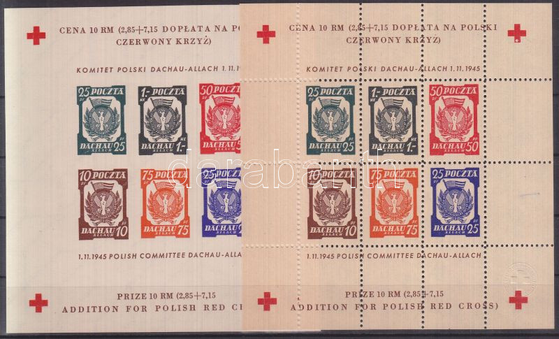 1945 Dachau lengyel vöröskeresztes segélybélyeg - blokkok vágott és fogazott
