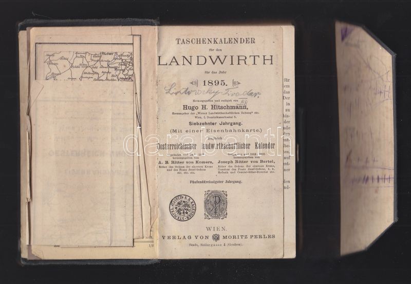 1895 Hitschmann Mezőgazdasági zsebatlasz az Osztrák-Magyar Monarchia számára térképpel (kissé viseltes borító) / Agricultural Calendar